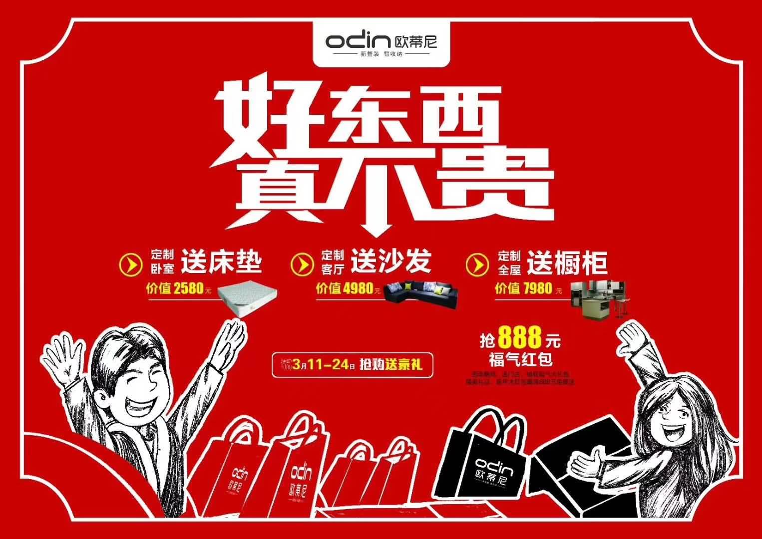 3月,萬物復(fù)蘇、春暖花開,家居裝修正當時!在這3.15消費者權(quán)益日來臨之際,為了回饋和感謝廣大消費者一直以來對歐蒂尼的大力支持與信賴,歐蒂尼家居重磅推出“好東西,真不貴”3.15主題促銷活動,多款產(chǎn)品套餐優(yōu)惠升級禮惠全城!