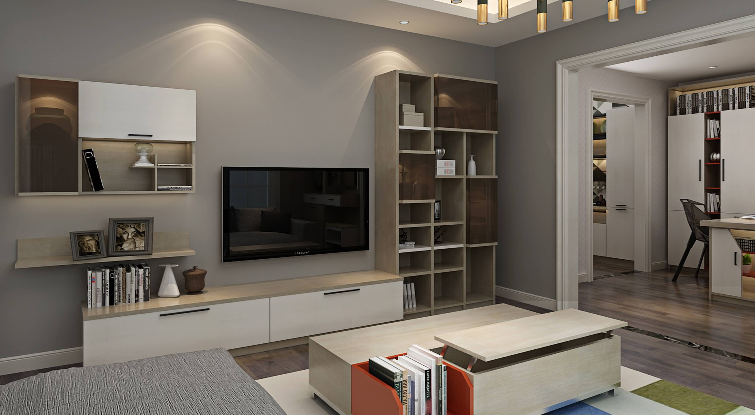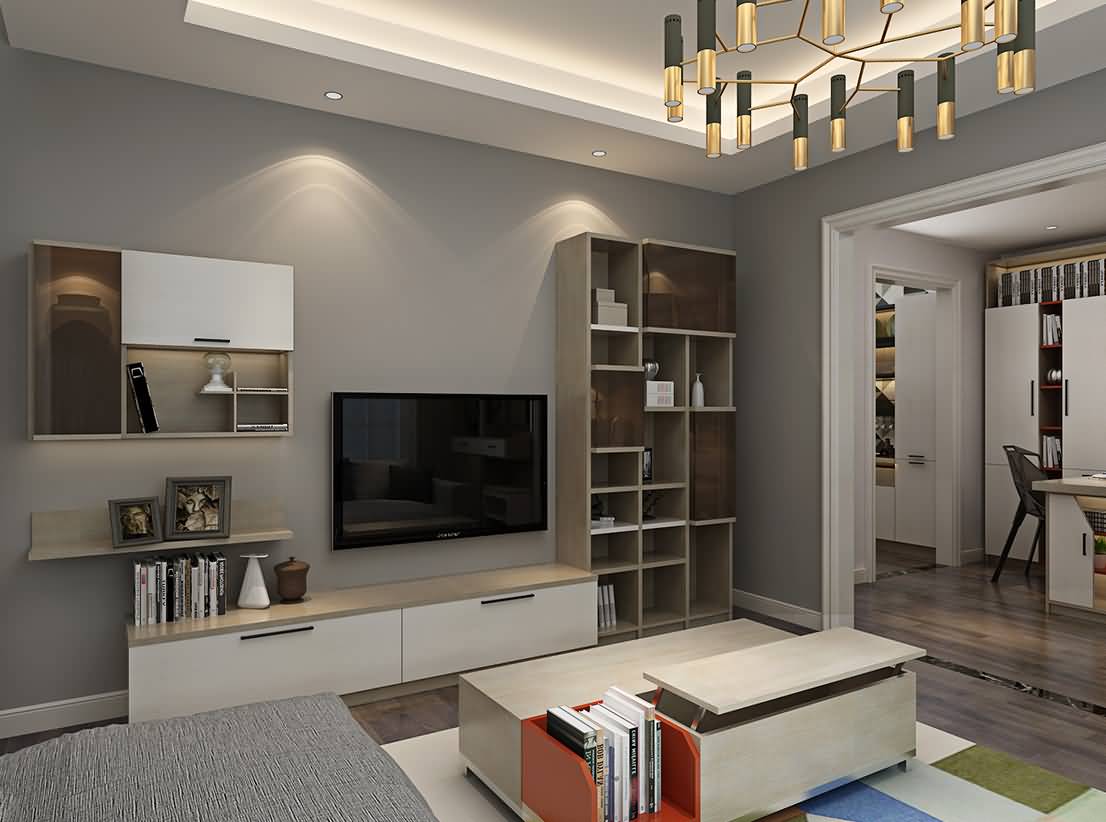 電視柜柜體采用雙面玻璃合頁(yè), 凹凸的層次感正是設(shè)計(jì)師理念 的體現(xiàn) |